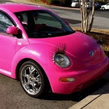 Berea: A bright pink VW beetle with eye lashes on the headlights! How girly can you get a car?!